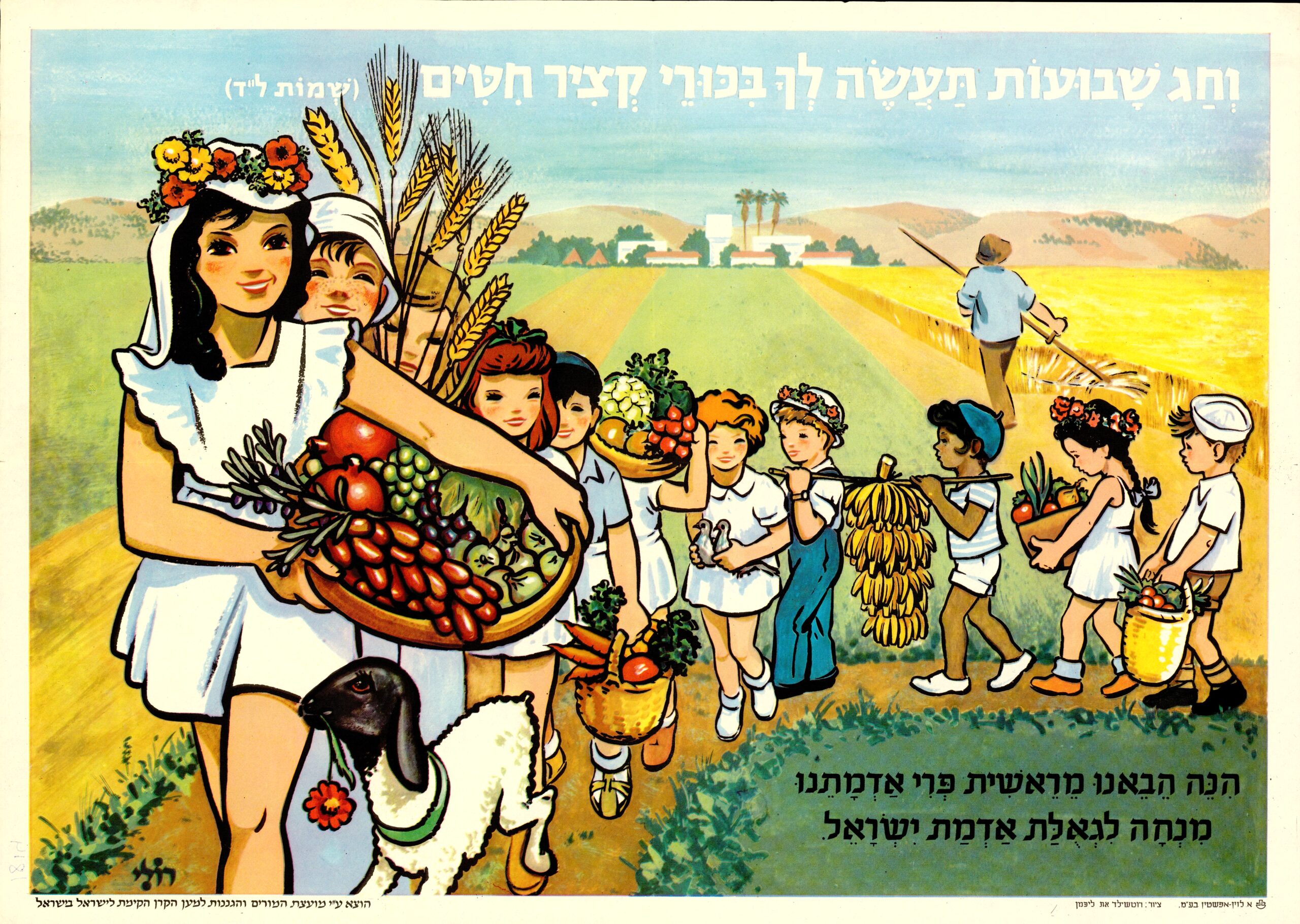 Among the most beloved are the Bikkurim posters for Shavuot, capturing the joyful spirit of children presenting the season’s first fruits.